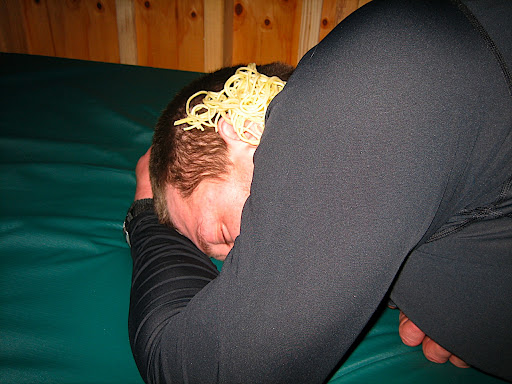 Chad was the chef, making pasta with marinara or cream sauce (I mixed) with shrimp, and a salad for dinner, and banana pancakes and tons of bacon for breakfast. The rest of the night we finished off two bottles of Jager, a liter of SoCo, some Evan Williams premixed with coke, some Bushmill, and beers and Sparks. It was pretty ridiculous. Tired, we got to bed fairly early, but not as early as the Mountain Ninja birthday boy.